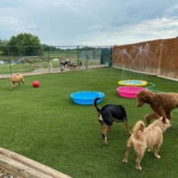 Play groups are designed by our staff based on temperament, size and play style. Play groups are supervised until we are comfortable with each dog’s behavior. Groups may range in size from two dogs up to a maximum of ten or twelve in the larger yards.