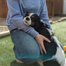 Alivia joined the Doggie Do Right team in 2020. Her favorite part of the day is setting up play groups. Most of the time, she can be found on the floor of one of the kennels, providing some extra TLC to any dog who enjoys the company.