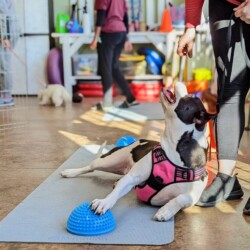 Becca has a deaf boxer mix, a bully mix, and a lab mix at home.